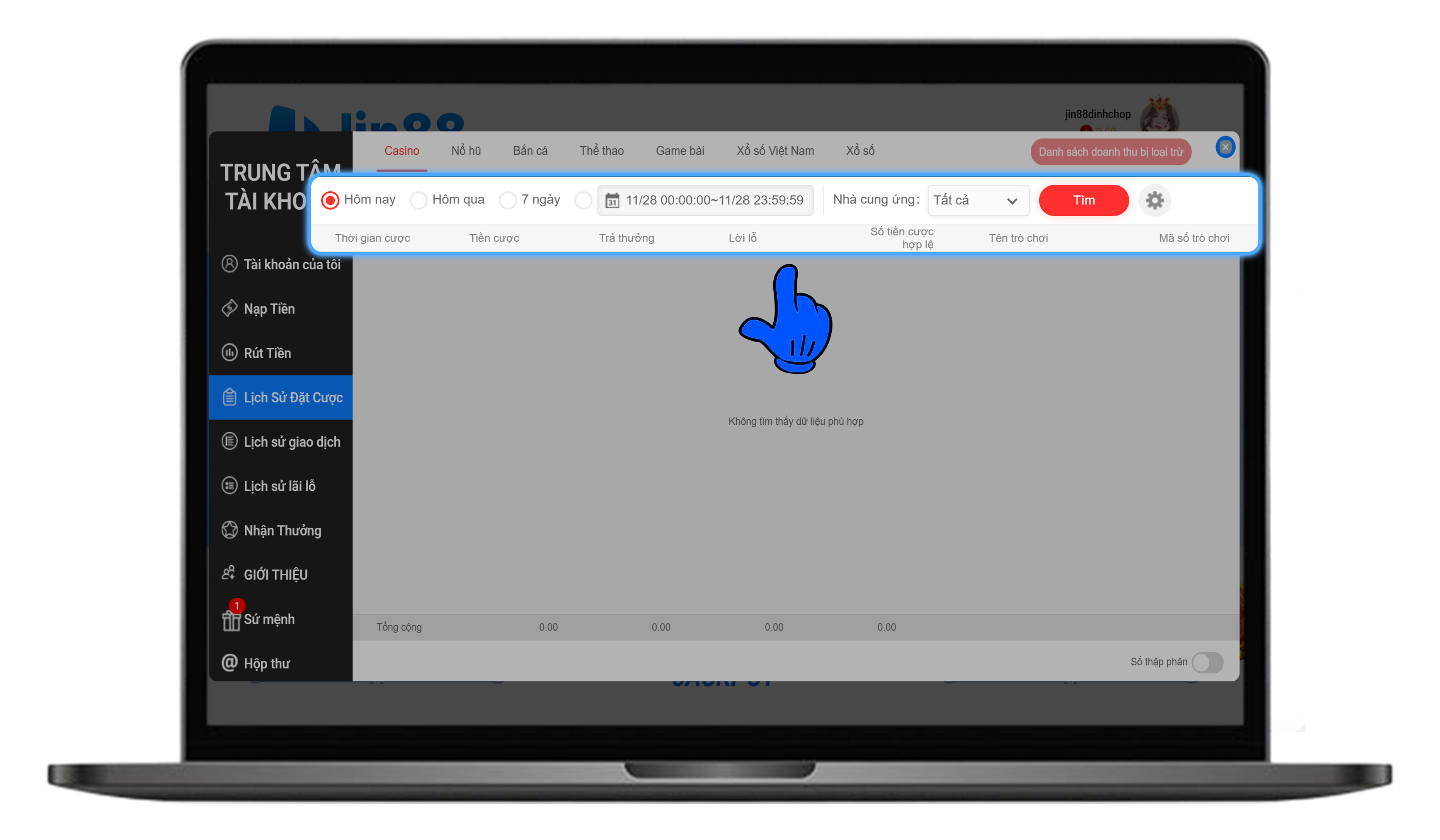 C. Hướng Dẫn Kiểm Tra Lịch Sử Đặt Cược PC C. Hướng Dẫn Kiểm Tra Lịch Sử Đặt Cược PC 01 ĐĂNG NHẬP TÀI KHOẢN CHỌN LỊCH SỬ ĐẶT CƯỢC"02 CHỌN SẢN PHẨM VÀ THỜI GIAN MUỐN KIỂM TRA.